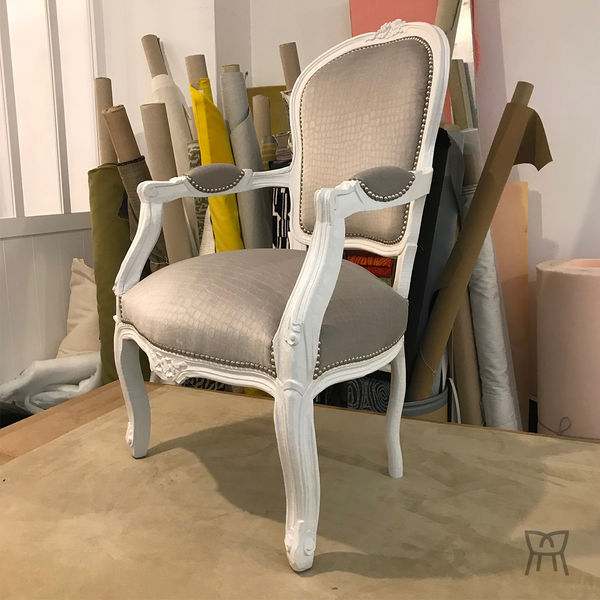 Velours Froca gris texturé façon Croco, finition clous alu brossé.